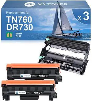 MYTONER Compatible Toner Cartridges Replacement for Brother TN760 TN-760 DR730 Drum Unit TN730 TN-730 for MFC-L2750DW MFC-L2690DW MFC-L2710DW MFC-L2717DW HL-L2350DW Printer (2 Packs Toner, 1 Drum)