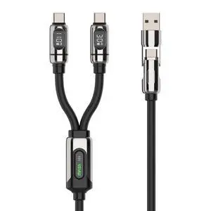 MFish 140W Smart 2-in-1 USB-C Charging Cable with LED Power Display, PD 3.1 Dynamic Power Allocation, Charge MacBook Pro & Phone Simultaneously, Liquid Silicone, Data Sync, 5FT Black