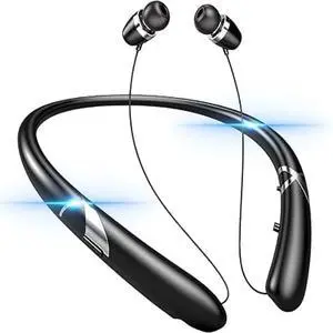 ForFuego Retractable Neckband Bluetooth Headphones, 48H Playtime Wireless Earbuds, Bluetooth 5.0, Built-in Speaker & IPX5 Waterproof, Auto-Coil Cord, Ultra-Light Comfortable Fit, Blue