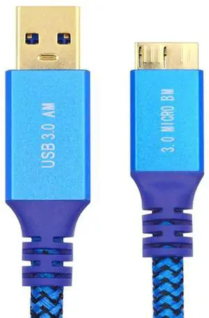 JAENFONG 5Gbps USB 3.0 Type-A Male to USB3.0 Micro-B Male Extension Braided Cable Sleeve Blue for Disk SSD Camera Data 0.6m