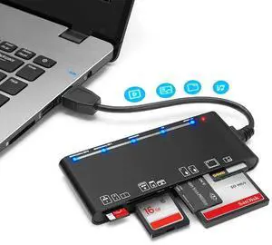 USB C USB3.0 Multi Card Reader for SD, CF, Micro SD, XD, MS Cards - 7 in 1 Adapter Hub for Windows, Mac, Linux, Android