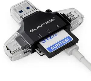 USB-C Type-C3.0 and USB3.0 Triangle Memory SD Card Reader 4 in 1 for iPhone/iPad/Android/Mac/Trail Game Camera The Viewer Supports SD/TF Card Micro SD Card Adapter