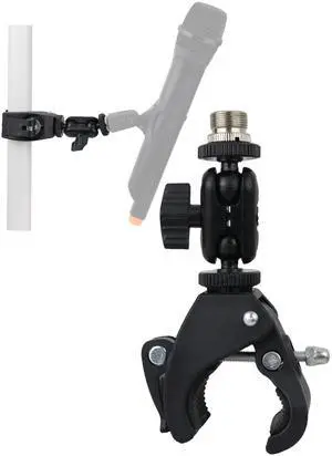 Mic Crab Clamp Microphone Mount with Double Ball Head Adjustment 1/4" to 5/8" Thread, Fits Mic Stand, Drum Stand, Desktop Shelf