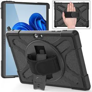 Rugged Case for Surface Pro 11/10/9, Heavy Duty Shockproof Protective Cover with 360Rotating Kickstand/Hand Strap, Compatible with Type Cover Keyboard,Black