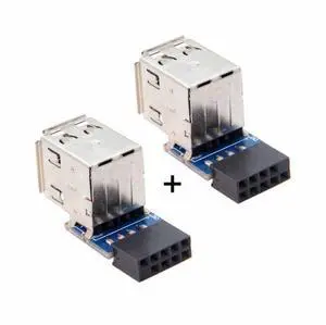 CY 2pcs 9Pin/10Pin Motherboard Female Header to Dual USB 2.0 Female Adapter Vertical Type