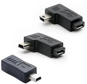 Micro USB to Mini USB 2.0 Extension Adapter, Male to Female, 9mm Long Connector Left Angle 90-Degree 5-Pin