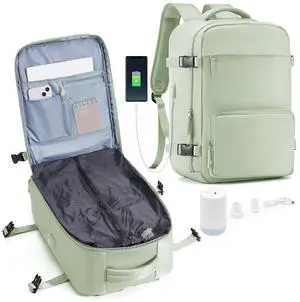 suradar Vacuum Travel Backpack with Pump Vacuum Compression Seal Vacpack Air Backpack Laptop Backpack for Women Men Carry on Backpack Personal Item Travel Bag Luggage Flight Approved Mint Green