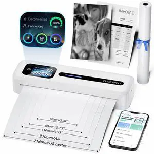 Phomemo Portable Printer, M833 Upgrade Portable Inkless Wireless Printers for Travel, Bluetooth Label Printer Support 8.5'' x 11'' US Letter & A4 Thermal Paper, Suitable for Home Office Business