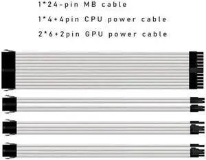 Bailink PSU Extension Cable Sleeved Custom Mod PC Power Supply Cable, Soft Nylon Braided with Comb Kit 24PIN/8PIN to 6+2Pin/ 8PIN to 4+4PIN-30CM 300MM - All White Edition