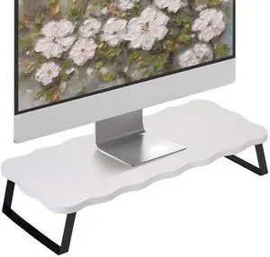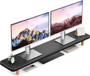 Dual Monitor Stand Riser, Large Wood Monitor Riser for 2 Monitors, Monitor Lift with Storage for Desk, Sturdy Wood&Steel Multi Screen Stand, Desktop Organizer Monitor Stand for Computer