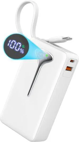 Portable Charger 10000mAh,22.5W Fast Charging Power Bank with Built in Cables,Transparent External Battery Pack with Flashlight,USB C in&out Portable Phone Charger for iPhone Samsung Android Cellphone- Brand: Mandarooker