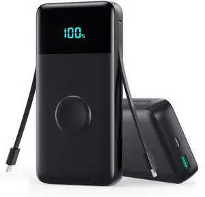 1 Pack Portable Charger with Built-in USB-C Cable & Plug 10 000mAh 5V/4.5A Power Bank Fast Charging 22.5W Travel Essential Battery Pack 3 Output for iPhone 16/15 Series Galaxy iPad