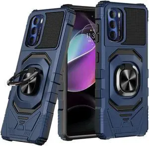 Robotic Series Dual Layer Hybrid Case with Ring Holder for Motorola Moto G 5G 2022 - Navy Blue