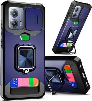 Military Grade All-In-One Ring Stand Card Case for Motorola Moto G 5G 2023 - Blue