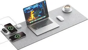 Heated Mouse Pad with 3-in-1 Charging (15W Magnetic Wireless + Type-C + USB-A), Waterproof Warm Desk Pad, 26H Auto-Stop Heating, Fabric & PU Leather Office Desk Mat, Large 31.5" x 13" (Grey)