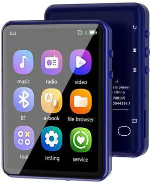 MP3 Player with Bluetooth, Touch Screen MP3 Music Player with Speaker, FM Radio, E-Book, Timing Shutdown, Resume Play, Portable Bluetooth MP3 Player with SD Card Slot Blue 64GB
