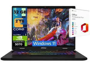 MSI Crosshair 16 Gaming Laptop, 16" QHD+ 240Hz, Intel Core Ultra 7 255HX 20 cores Processor, NVIDIA GeForce RTX 5070 8GB GDDR7, 32GB DDR5  2TB PCIe SSD, WiFi 6EWindows 11 ,Office 2024 License