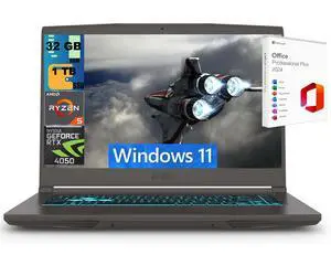 MSI Thin 15 Gaming Laptop, 15.6" Full HD 144Hz, AMD Ryzen 5 7535HS 6 cores Processor, NVIDIA GeForce RTX 4050 6 GB GDDR6, 32GB DDR5  1TB PCIe SSD, Wi-Fi 6E, Windows 11 Pro ,Office 2024 License