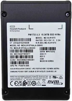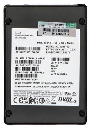 Samsung MZWLR7T6HALA PM1733 EVT2 7.68TB 2.5inch PCIe NVMe SSD