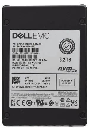 Samsung MZWLR3T8HCLS-00AD3 PM1733a 3.84TB NVMe 2.5inch Enterprise Ssd Dell Oem