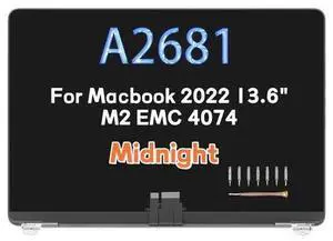 13.6" Screen Replacement Assembly for MacBook Air A2681 2022 M2 EMC 4074 MLXW3LL/A MLY33LL/A MLY43LL/A MLY03LL/A LCD Display Panel 2560X1664 (Midnight)