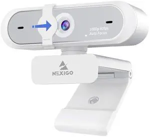 NexiGo N660P 1080P 60FPS Webcam with Software Control, Dual Microphone & Cover, Autofocus, HD USB Computer Web Camera, for OBS/Zoom/Skype/FaceTime/Teams/Twitch, White