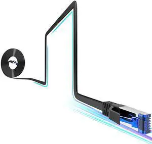 Cat8 Flat Ethernet Cable 1ft,5ft,10ft,25ft,40ft,50ft,100ft,500ft,1000ft, 1 Pc Pack, 40Gbps 2000MHz Network Patch Cord, S/FTP Shielded LAN Cable