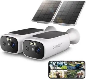 2K Solar Camera Outdoor Wireless-5/2.4Ghz WiFi Cameras for Home Security, AI Motion Detection, Color Night Vision, SD Card/Cloud Storage, Waterproof, Compatible with Alexa/Google Home (2 Cameras)