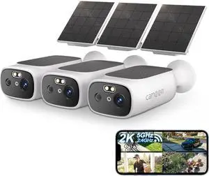 2K Solar Camera Outdoor Wireless-5/2.4Ghz WiFi Cameras for Home Security, AI Motion Detection, Color Night Vision, SD Card/Cloud Storage, Waterproof, Compatible with Alexa/Google Home (3 Cameras)