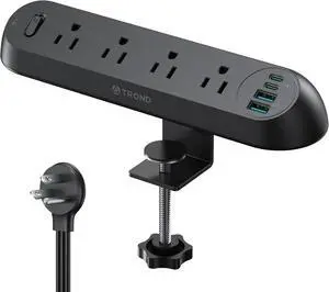 TROND Desk Clamp Power Strip USB C PD 20W- Surge Protector with 4 AC Outlets 4 USB Ports, Flat Plug 6ft Extension Cord, 1700J, ETL Listed, Fits 1.97 in Tabletop Edge, for Home Office Desk Accessories