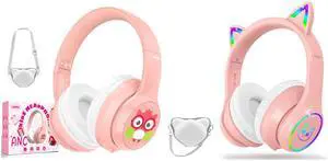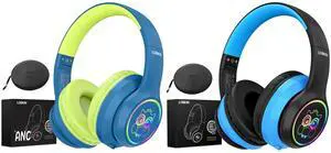 LOBKIN Active Noise Cancelling Headphones for Kids,Bluetooth 5.4,Kids Headphones Wireless with Mic 50H Playtime AUX Cord Safe Volume Limited Foldable for Boy Girl Travel/School/iPad(with LED Lights)