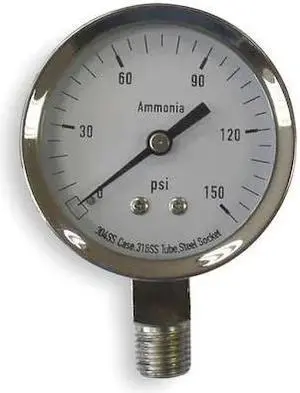 ZORO SELECT 4CFW4 Pressure Gauge,Ag Ammonia,2 1/2In,150Psi
