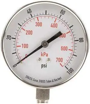 ASHCROFT 451279SS04LXLL100 Pressure Gauge,0 to 100 psi,4-1/2In