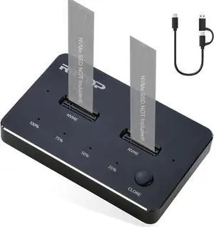 Rosewill NVMe SSD Cloner, M.2 Duplicator Dual Bay NVMe Enclosure, Tool-Free 20Gbps USB3.2 Gen 2X2 SSD to USB Adapter M.2 Docking Station for M Key PCIE NVMe SSD Reader Supports Offline Clone - RS-N2-C