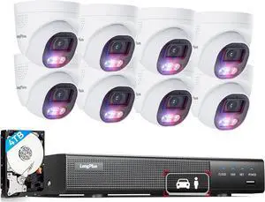 Camius PoE Security Camera System with 4K 8 Channel NVR, 4TB Hard Drive, 2 x 4K Spotlight Cameras (Siren, 2-way audio), 2 x 2K Outdoor Security Cameras, Audio Recording, Smart, AI detection