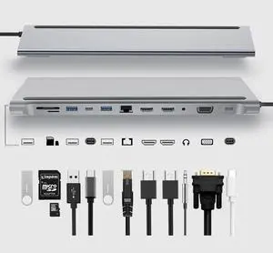 12 in 1 Laptop Docking Stations USB C Hub Docking Station 1Gbps Ethernet