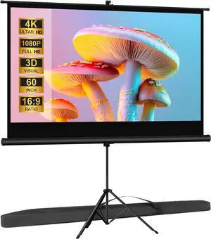 Outdoor Projector Screen with Stand Tripod, Indoor Pull Up Portable Projector Screen, 60 INCH 16:9 Adjustable Projection Screen with Carry Bag for Home Theater Backyard Party Movie Nights