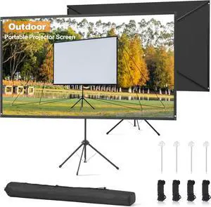 Outdoor Projector Screen 80 Inch, 16:9, High Gain, Projector Screen with Stand, Wind-resistant Design for Portable Projection Screen Outdoor, With Ropes and Spikes, 4K Image for Home Theater, Camping.