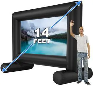 QILEBA 14 FT Inflatable Projector Movie Screen for Outside/Indoor, Blow up Projector Screen with Air Blower, Supports Front/Rear Projection for Backyard Home Theater Movie Night Outdoor Party