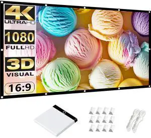 JMGO 100 inch Projector Screen, 4K/3D/HDR Support, Anti-Wrinkle, High Contrast, Front & Rear Projection, Easy Setup for Home Theater, Outdoor Movies, Office & Gaming