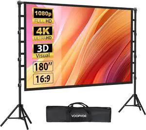 180 Inch Outdoor Projector Screen with Stand: VOOPVOR Portable Projection Screen and Stand, Indoor Rear Front Movie Screen 16:9 4K HD, with Carry Bag, Height Adjustable for Home Theater RVs Camping