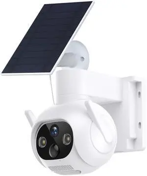 Tuya Smart APP 3MP Smart Solar Battery Camera Outdoor Camera Wireless, Weather Resistant with Solar-Powered Battery, Motion Alerts, Color Night Vision, Two-Way Audio 1-Pack, White