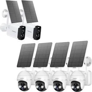 OOSSXX Solar Panel Battery Powered Cameras Wireless Outdoor, 2Packs