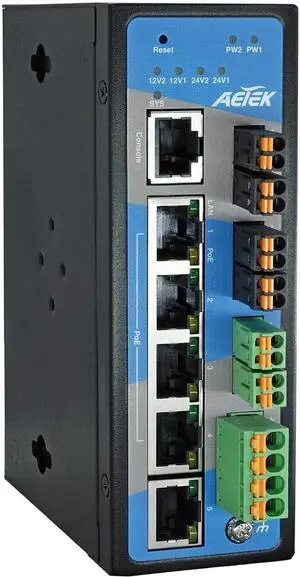 Industrial 4-Port Gigabit PoE+ Managed Switch for Mobile Surveillance Units (MSU) with 12-48VDC Input, 2 x 12VDC & 2 x 24VDC Outputs, 120W PoE Budget, 6KV Surge Protection, DIN-Rail Mount