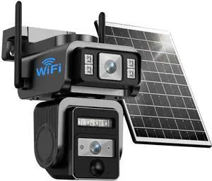 Solar-Powered Multi-Angle Security Camera, 4Lens Wireless Outdoor Camera with Color Night Vision, Motion Activated Spotlight/Siren, 360° Ptz Control, IP66, 2.4G & 5G WiFi for Home Security (1PC)