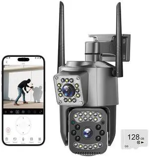 TOWODE 4MP Security Camera Outdoor, PTZ WiFi Dual Lens Security Camera, 360 View, Two-Way Audio, Auto Tracking, Color Night Vision,Humanoid Detection, 24/7 Continous Recordwith 128G TFcard