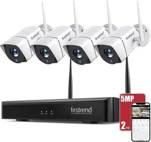 Firstrend Wireless Security Camera System, 5MP Ultra HD 4-Camera CCTV Kit, Two-Way Audio, Night Vision, Motion Alerts, 8CH NVR 2TB HDD, App Remote View for Indoor Outdoor