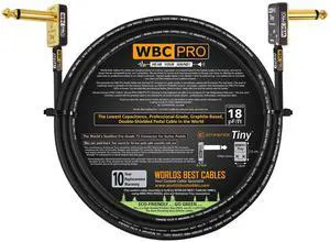 18 Foot - WBC-PRO-Guitar 20 AWG - Low-Cap (18pF/ft) Pro-Grade Graphite-Based - Dual-Shielded Guitar, Bass, Instrument Cable with Neutrik Straight to Angled Inch (6.35mm) Gold TS Connectors
