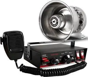 8Tones 200W Emergency Siren with PA - IP67 Waterproof Police/Fire Truck Siren, Yelp/Wail/Hi-Lo Modes, Includes Mic & Speaker for Vehicle PA System | 12 Volt Siren | Car Alarm Siren