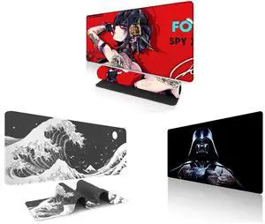 Alpha Fit Anime Gaming Mouse Pad XXL (35.4" x 15.7") - Red Rose Assassin Girl - Large Mouse Pad Extended - Extra Large Gaming Mouse Pads Secret Agent Style - 11 and Alpha Fit Black & White Great Wave Gaming Mouse Pad XXL (35.4" x 15.7") - Monochrome Ink Wash Japanese Art Desk Mat - Minimalist Setup with Stitched Edges and Alpha Fit Star Wars Gaming Mouse Pad XXL (31.5" x 11.8") - Darth Vader Dark Side Art - Large Mouse Pad Extended - Extra Large Gaming Mouse Pads Sith Lord Desk Mat 31